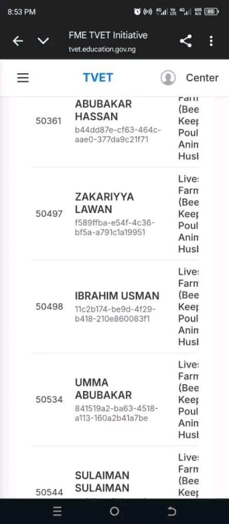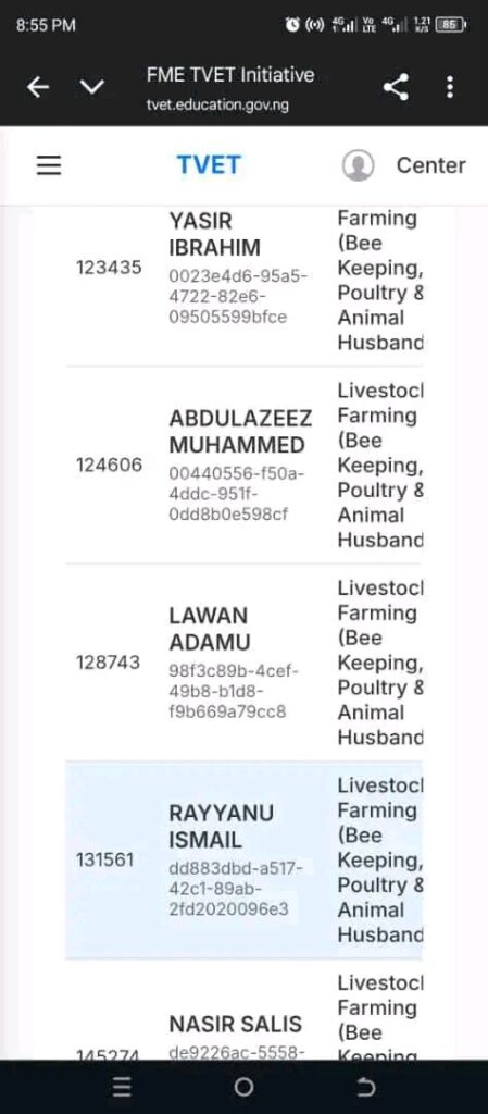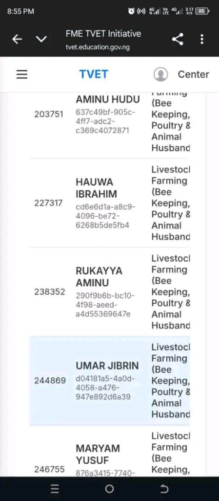 As you can see above, the training centers comes with all your information including your name, state, address, phone number and TVET ID.